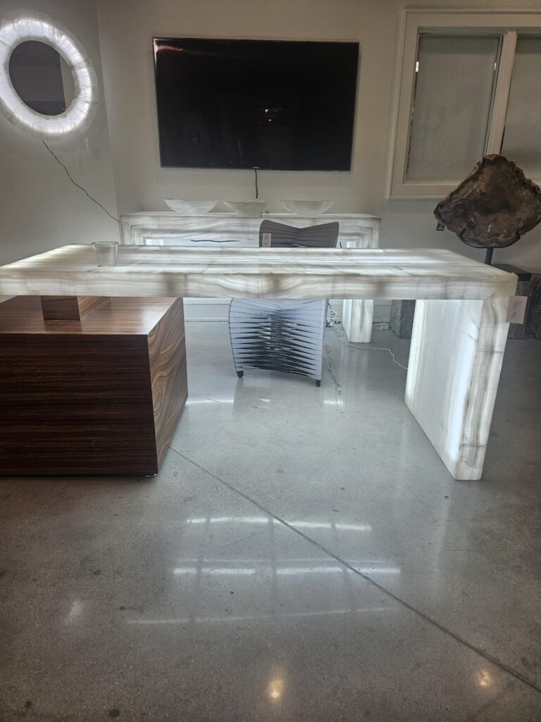 Statement consoles are evolving with a unique twist this year—natural and faux stones are becoming a staple in high-impact case pieces like tables, consoles, and nightstands. These pieces use a mix of natural and artificial stone to keep prices accessible while achieving a high-end look. Backlighting and inlaid stones are also adding a dramatic flair, highlighting the beauty of the material and bringing a touch of luxury. Stone is even making its way into kitchen and bath design, suggesting that this trend is only set to expand.