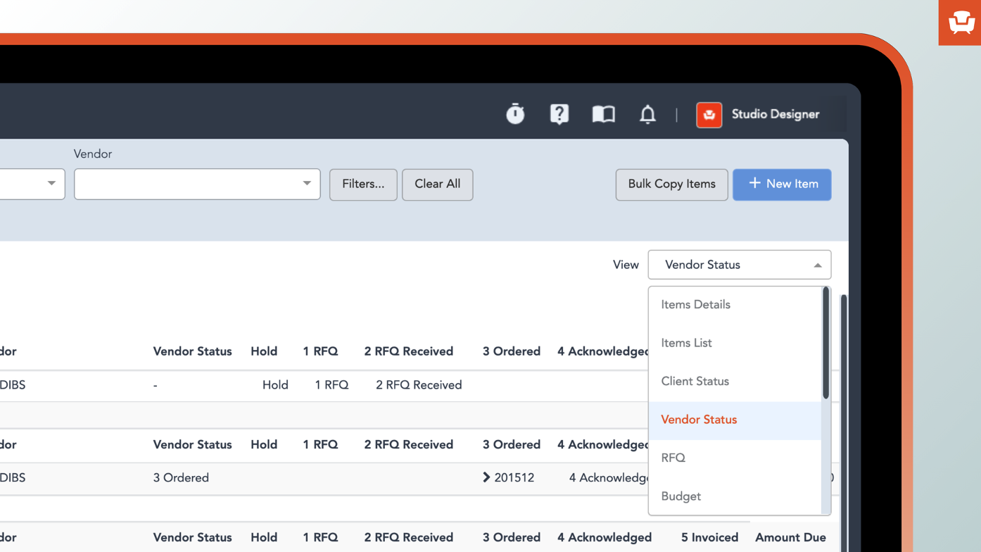 If you’re using Studio Designer, this is where Smart Views come in. Tools like the Dates View and Vendor Status View give you a focused look at your items with just a few clicks. You can filter by ship status, delivery location, vendor, project, or any field you track — then export a report or review it with your team. It’s a fast, flexible way to get answers and stay in control without the spreadsheet sprawl.