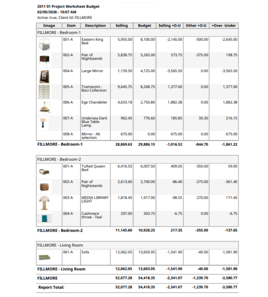 Designers who value precision often rely on item-based budgets to maintain clarity and control from day one. This method makes it easy to track scope changes, identify items added outside the original plan, and reference clear documentation if budgets shift later in the project.