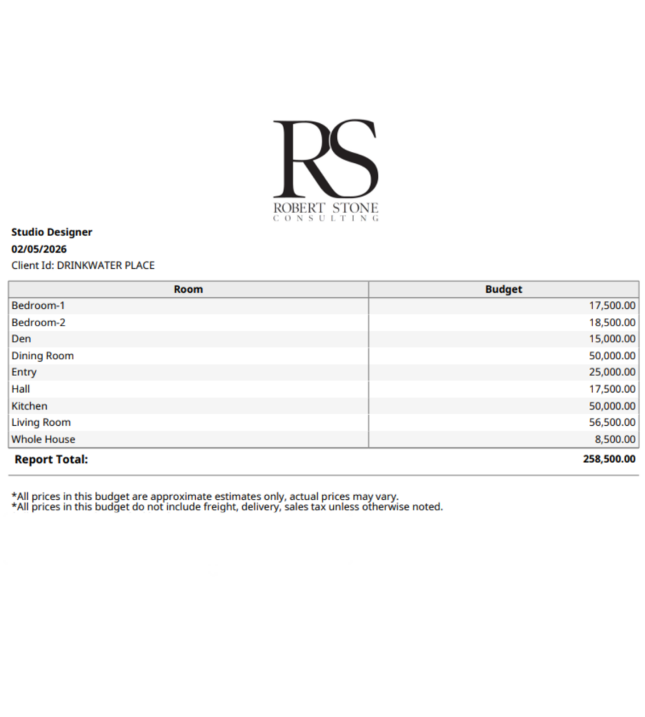 Whether you prefer detailed item-based budgets, high-level room allocations, or a single project-wide placeholder, Studio Designer gives you the flexibility to build structure without limiting creativity. You can start with as much or as little detail as the moment requires, then refine your approach as the project comes into focus.